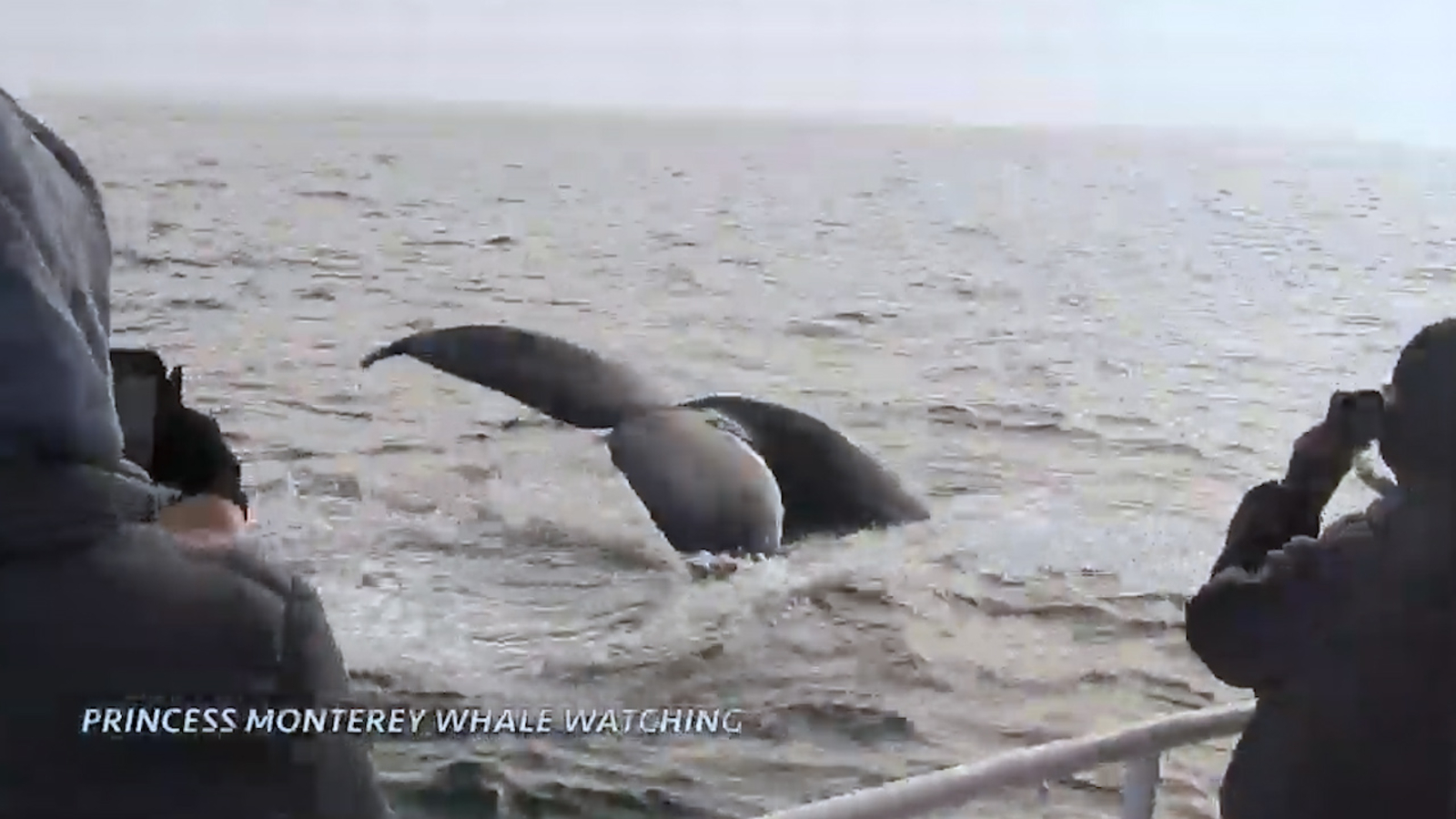 MONTEREY, Calif. (KGO) -- Passengers aboard a Princess Monterey Whale Watching tour had a whale of a time as two Humpbacks playfully 'watched' the whale watchers.