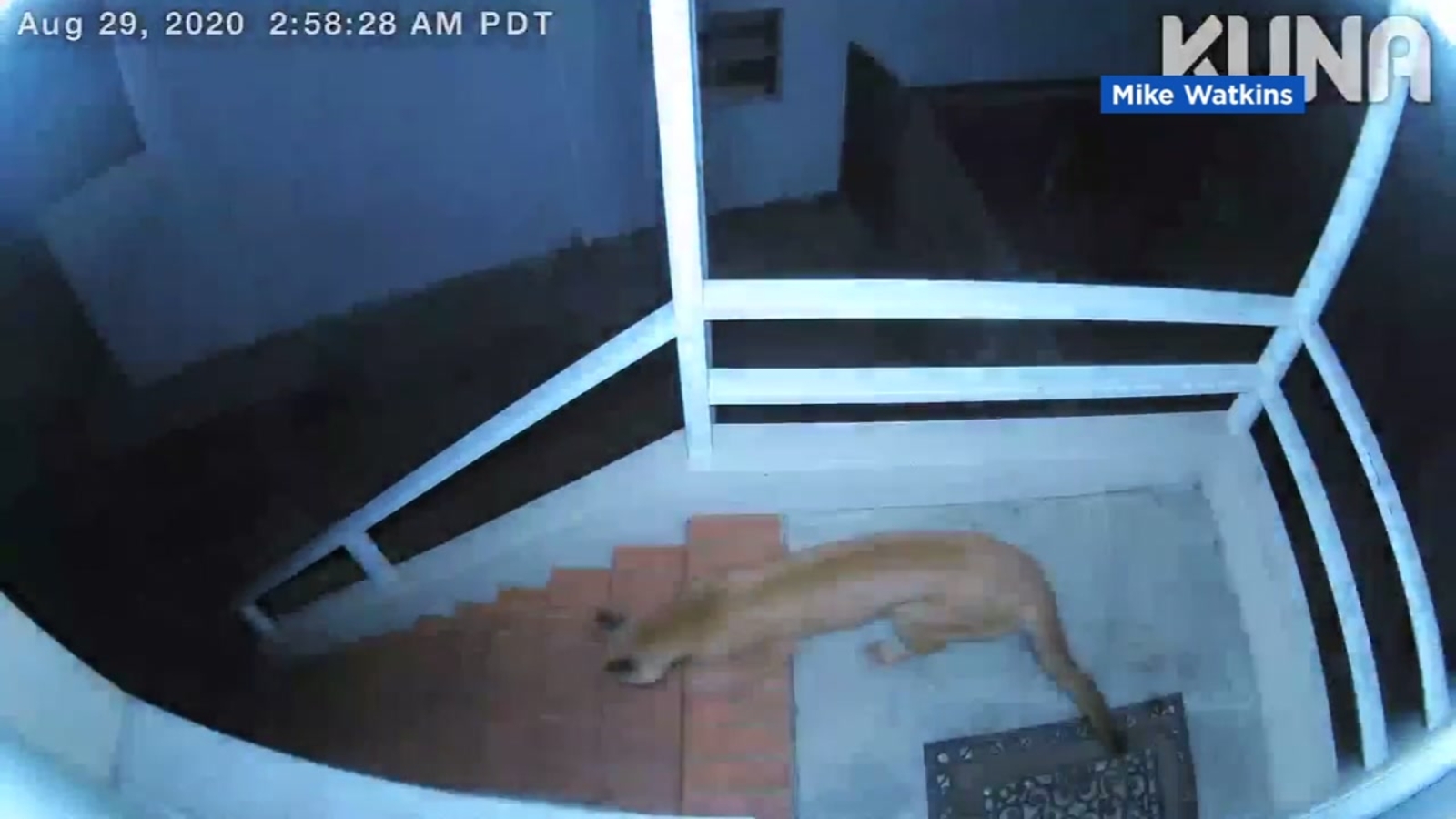 PACIFICA, Calif. (KGO) -- A mountain lion was spotted on the front steps of a home in the Fairmont neighborhood in Pacifica this weekend.