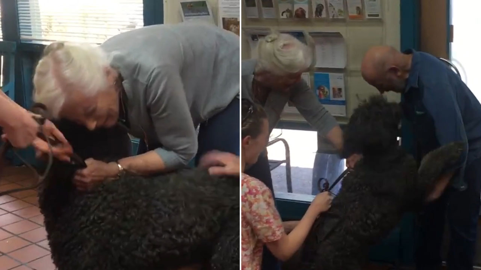 Thanks to a microchip, the society was able to find Bill's family. When he was brought out to meet them, the tearful moment was caught on video.