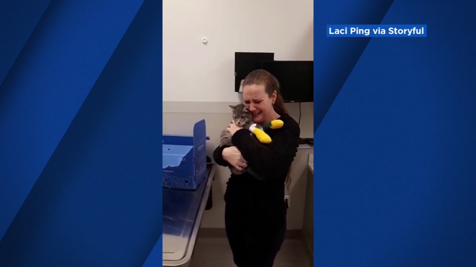 Laci Ping broke down in tears after finding her cat Mayson. His bandaged paws were burnt in the fire.