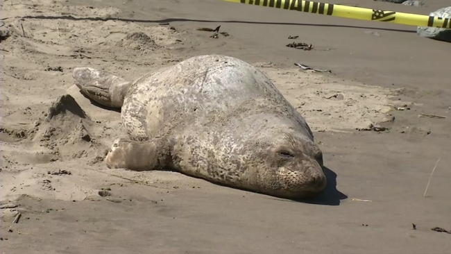 SAN FRANCISCO (KGO) -- A young elephant seal was seen taking advantage of the sunshine on what's been the warmest day of 2019 so far.