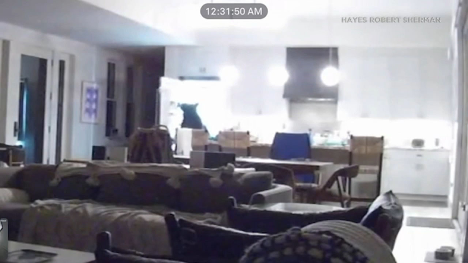 Video shows when the bear enters and then makes itself right at home. It opened the kitchen fridge and also checked out the kitchen counter.