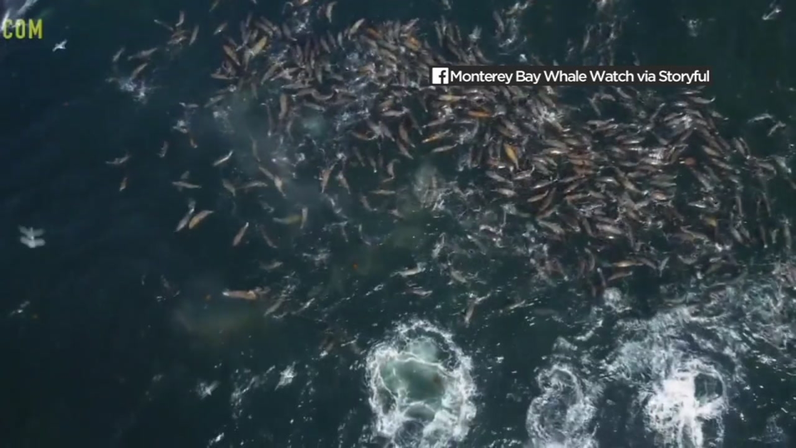 MONTEREY BAY, Calif. (KGO) -- Video shows a humpback whale feeding frenzy in Monterey Bay.