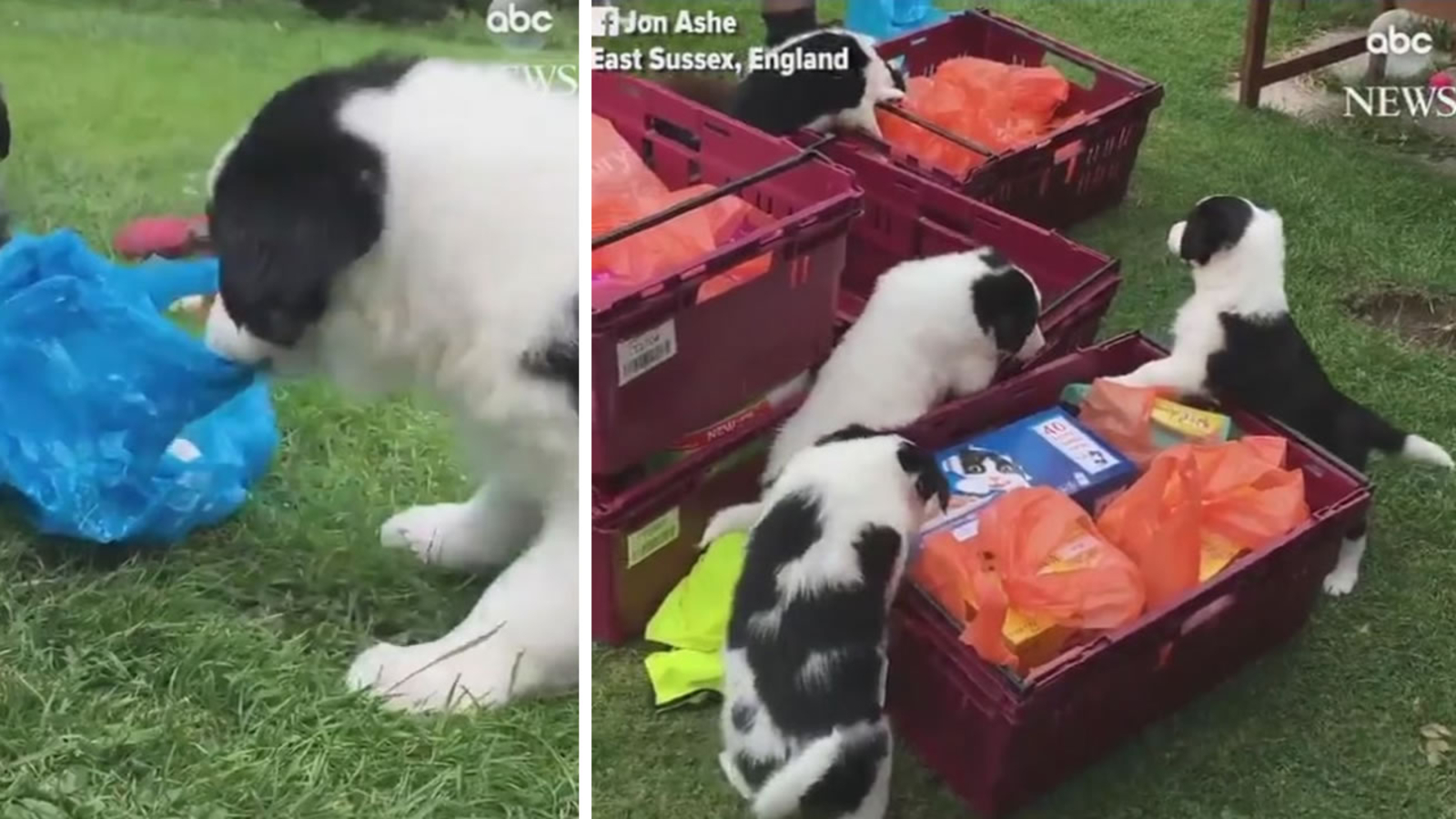 A delivery man in Sussex, England was trying to bring groceries to a home when he was attacked -- by adorable puppies.