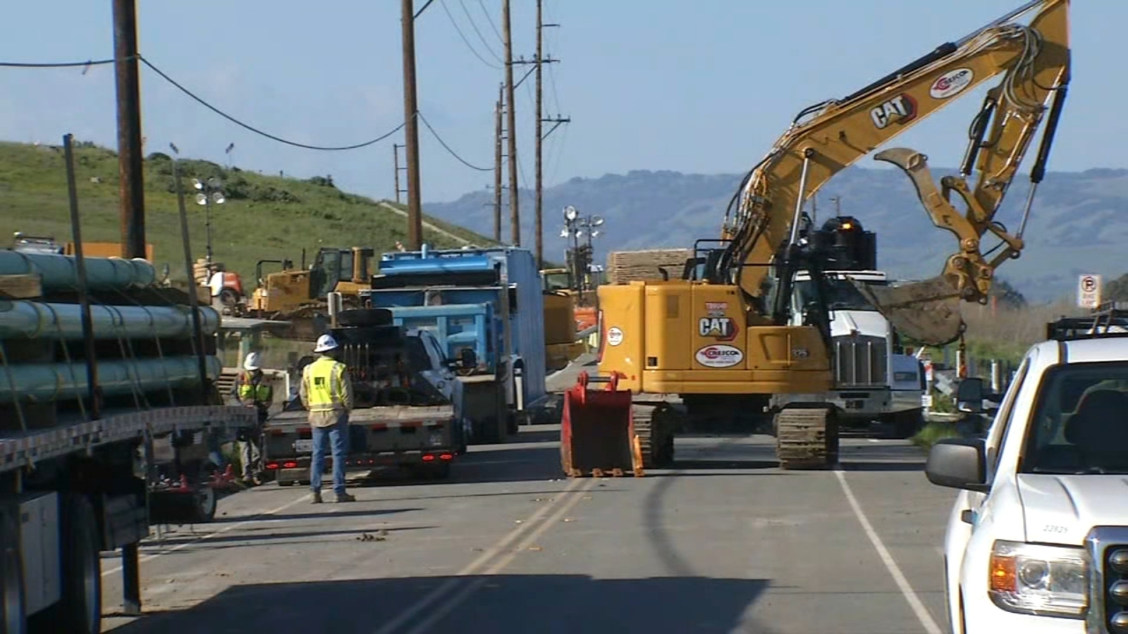 Officials say it's a massive undertaking in a short amount of time. Crews have to cut through the frontage road and Highway 101 so they can lay the new gas line on the median divide. And then, back across the freeway, bypassing the eroded hillside. It's a total of 2,000 feet of transmission line.