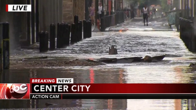 Drone 6 video of Center City water main break on July 3, 2018.