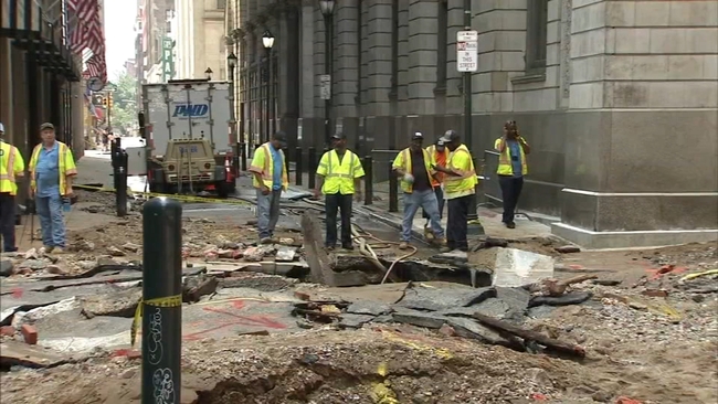 The Philadelphia Water Department says the intersection is likely to remain closed for weeks.