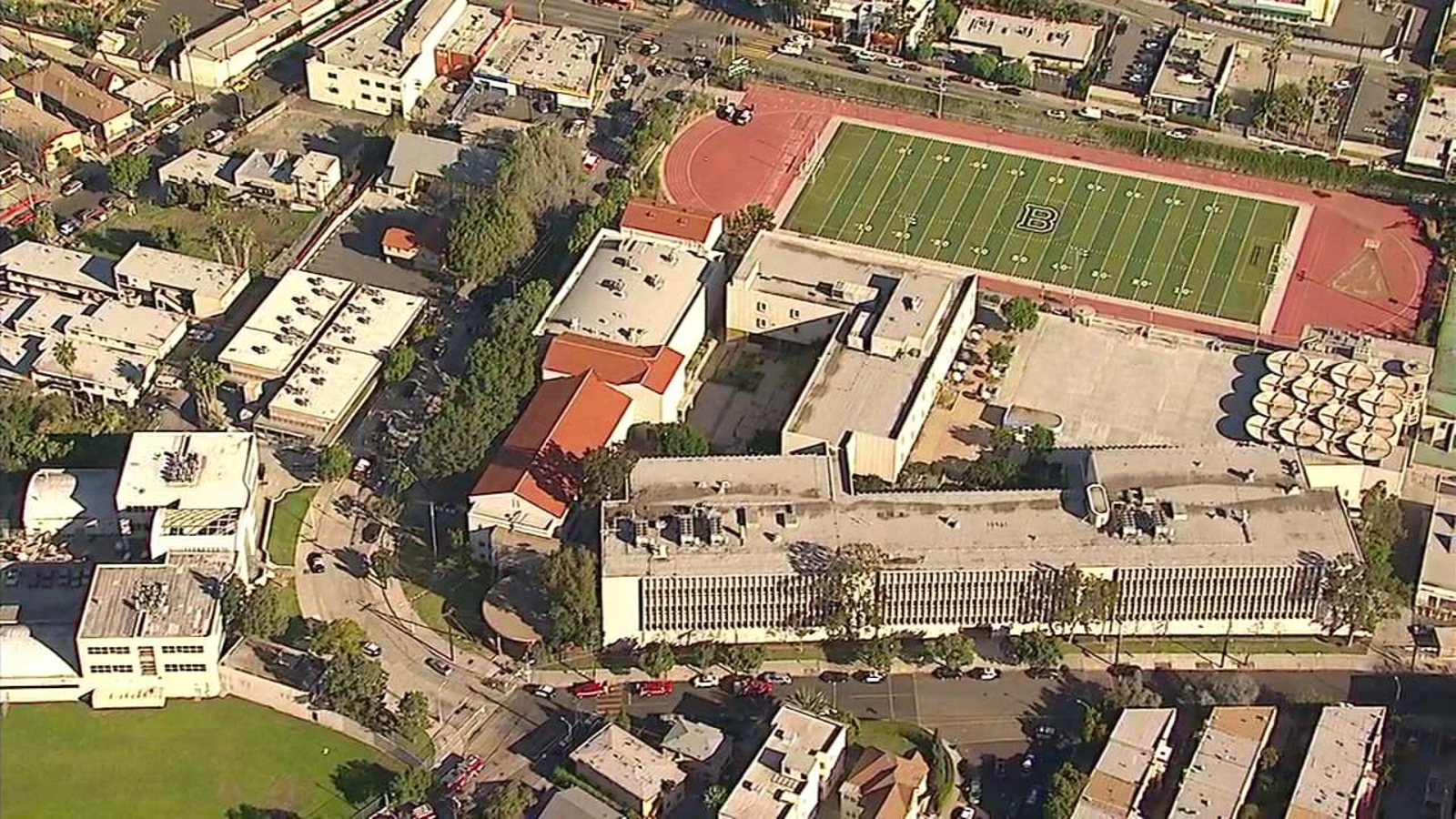 Police officers swarmed the campus after the shooting was reported shortly before 9 a.m. Sal Castro Middle School is located on the campus of Belmont High School, Los Angeles School Police said. Approximately 50 LAFD firefighters and seven ambulances responded to the incident.