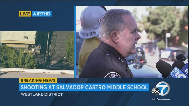 LOS ANGELES -- Two teenagers were shot on campus at Sal Castro Middle School in the Westlake district of Los Angeles on Thursday, and a 12-year-old girl has been detained, police say.