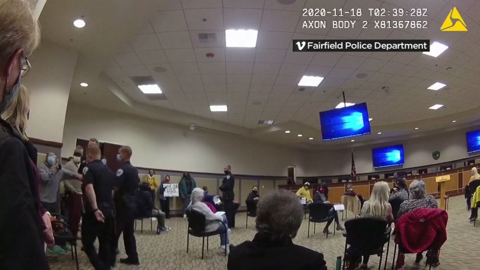 FAIRFIELD, Calif. (KGO) -- Video shows the disruption at a Fairfield City Council meeting Tuesday before police arrested nine people.