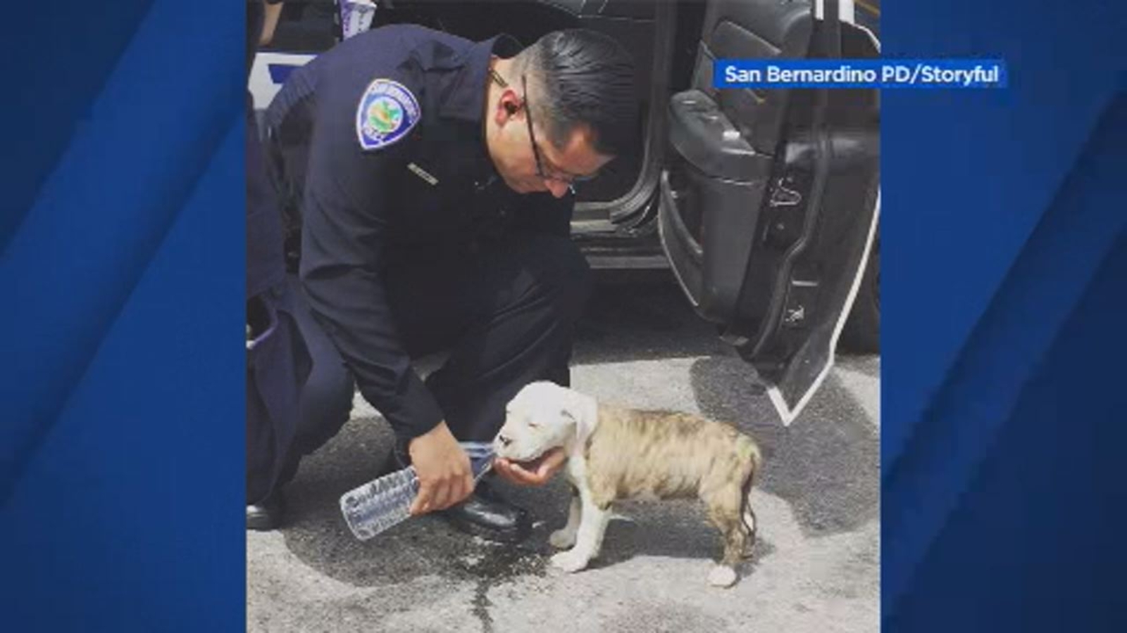 SAN BERNARDINO, Calif. (KGO) -- Chances are if you're too little to reach the foot pedals, you're probably not going to go very far in car. The San Bernardino Police Department says officers found a puppy stuck in a vehicle during a robbery investigation on Wednesday.
