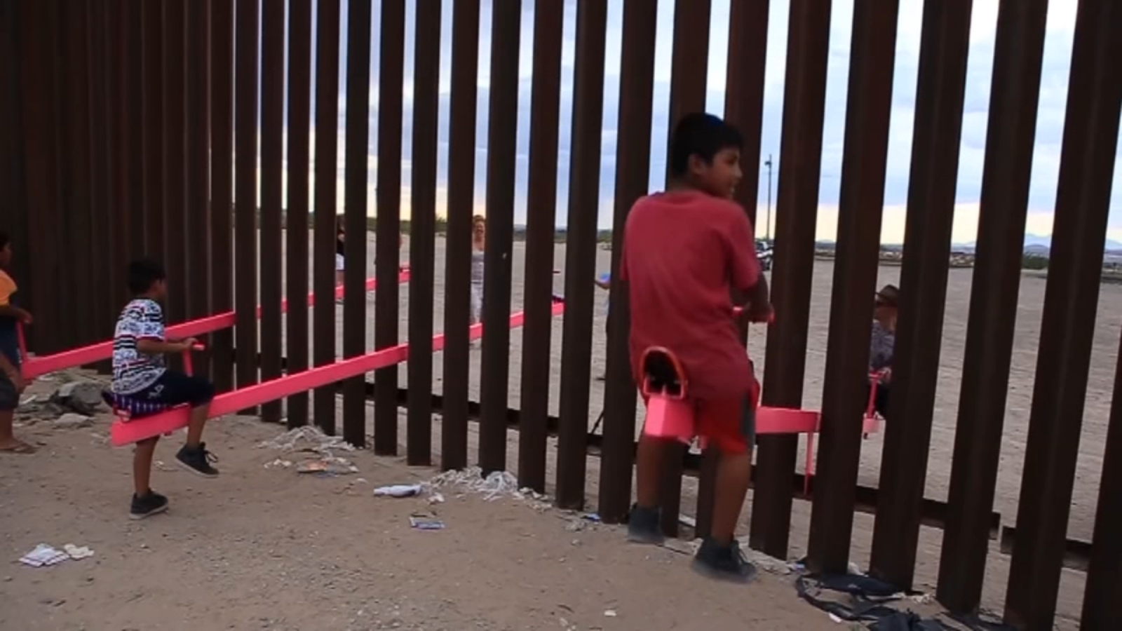 SUNDLAN PARK, N.M. -- Bright pink steel seesaws are bringing children together on both sides of the United States-Mexico border.