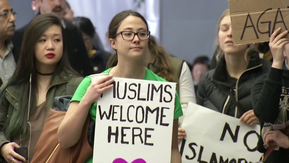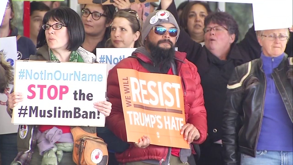 SAN FRANCISCO (KGO) -- Hundreds of people gathered at San Francisco International Airport Saturday and Sunday to protest President Donald Trump's executive order banning entry