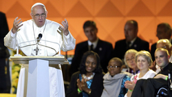 "By contributing your gifts, you will not only find your place here, you will help to renew society from within," the first pope from Latin America said in his native Spanish.