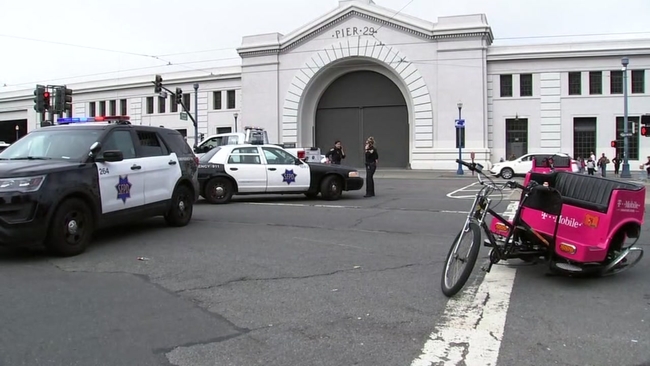 SAN FRANCISCO (KGO) -- San Francisco worked late to process the scene at Embarcadero and Sansome Street after a car hit a pedicab, seriously injuring several people.