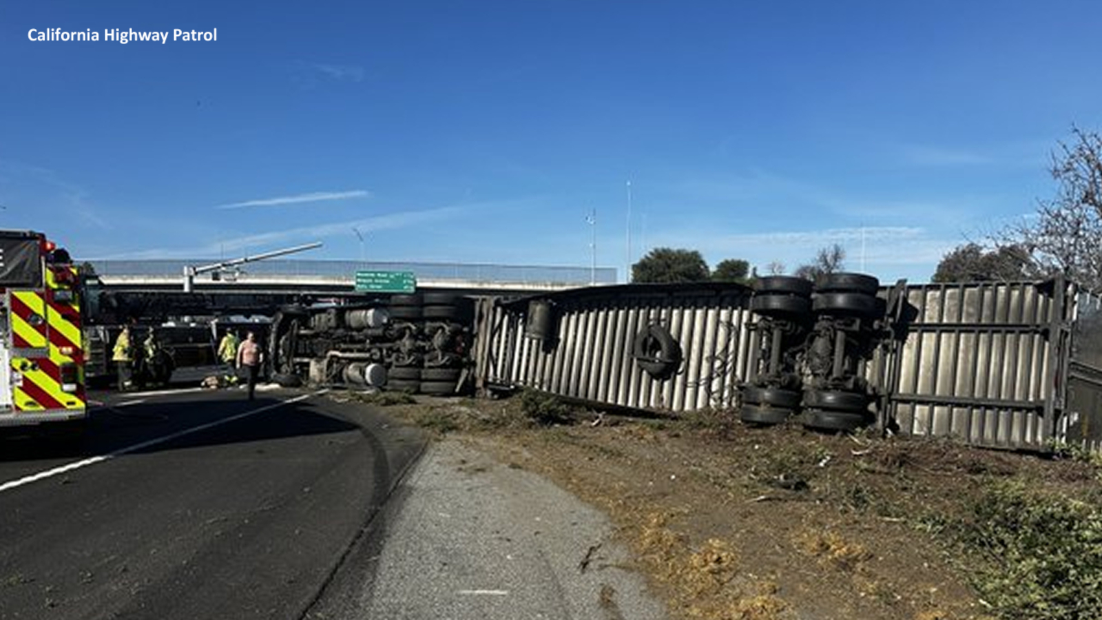 CHP officers responded to the wreck near Marsh Road at about 10:50 a.m. and found the big rig on its side on the righthand shoulder.