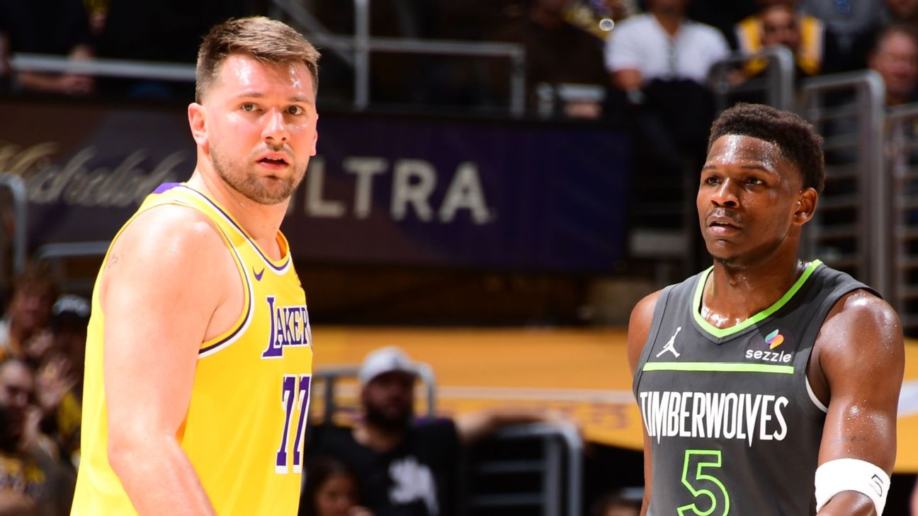 Rudy Gobert dominated for the Timberwolves with a 27-point, 24-rebound performance. He is the second Timberwolves player with a 20-point, 20-rebound game in the playoffs, joining Kevin Garnett. Luka Doncic had 28 points, 9 assists and 7 rebounds to lead the Lakers.