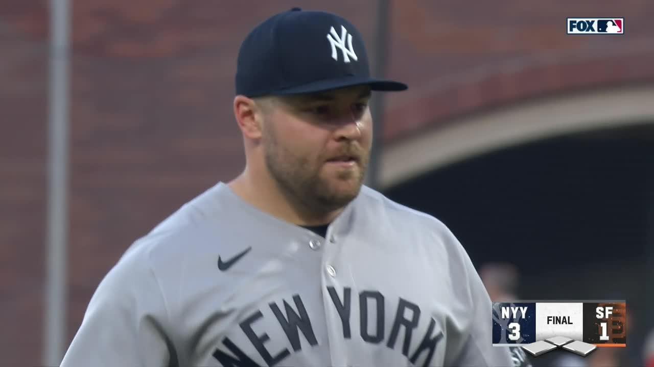SAN FRANCISCO -- - Aaron Judge homered for a second straight day to nearly the same left-field spot, Ben Rice hit a two-run double in the third inning, and the New York Yankees beat the San Francisco Giants 3-1 on Saturday for a three-game sweep.