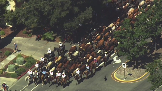 VIDEO: Cattle drive through Pleasanton kicks off Alameda Co. Fair
