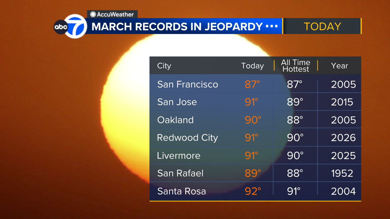 Each afternoon this week, we do expect records to be broken. It is another day of record heat with San Francisco, Oakland, San Jose, San Rafael, Redwood City, and Livermore all seeing new record highs.