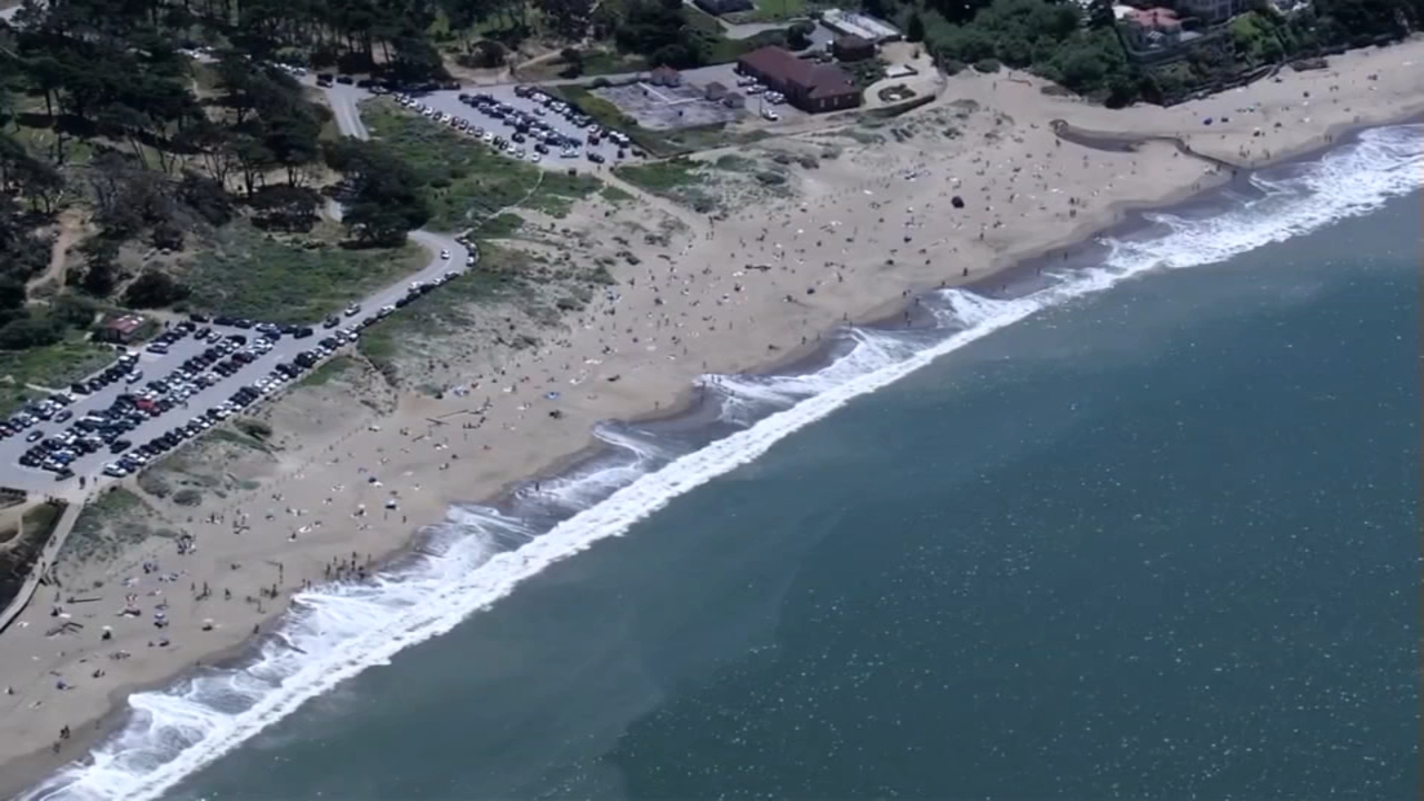 SKY7 caught sunbathers from San Francisco's Ocean Beach to Linda Mar Beach in Pacifica.