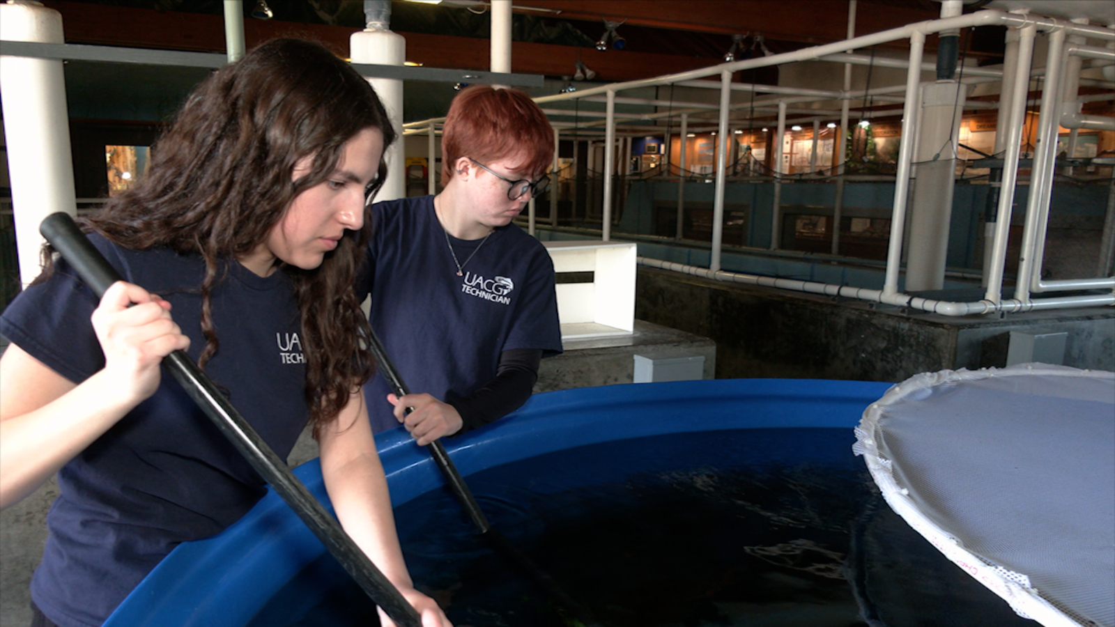 "We take the fish that we have in our hatchery and we're putting a little microchip into their bellies, so that we can track where they're moving up and down the creeks. We have little antennas out there in the creeks and we can track if they're migrating up further into the creeks higher up, or if they're out-migrating towards the ocean," says senior Joseph Bendik.