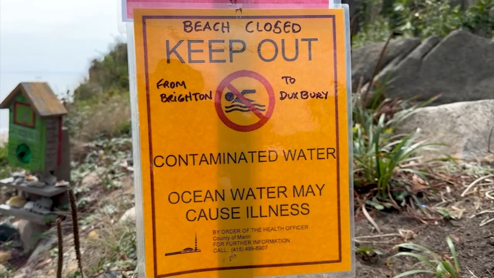 MARIN COUNTY, Calif. (KGO) -- Community concern in the North Bay is growing following the closure of a popular beach after human waste was discovered leaking from a nearby cliff.