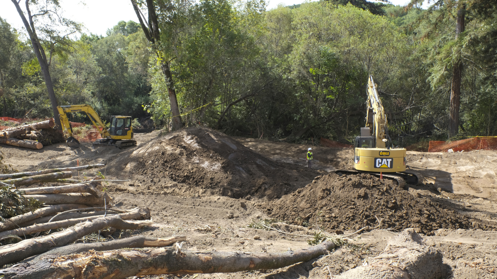 Steiner chose a stretch of creek between the abandoned railroad towns of Tocaloma and Jewell. At their peak in the redwood logging days, they clogged the shoreline with homes, concrete, and septic systems---all gone now. When finished, the project will have moved $15 million pounds of soil.