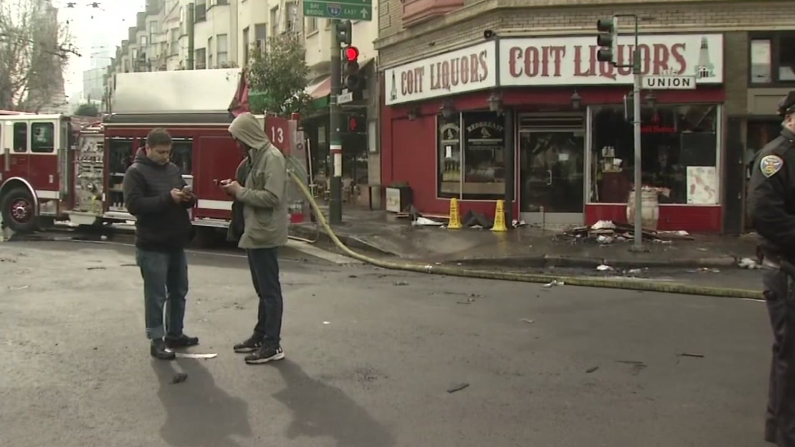 SAN FRANCISCO (KGO) -- Parts of San Francisco's famed North Beach neighborhood was off limits Sunday, 24 hours after a dramatic four alarm fire which engulfed entire brick building on Union St.