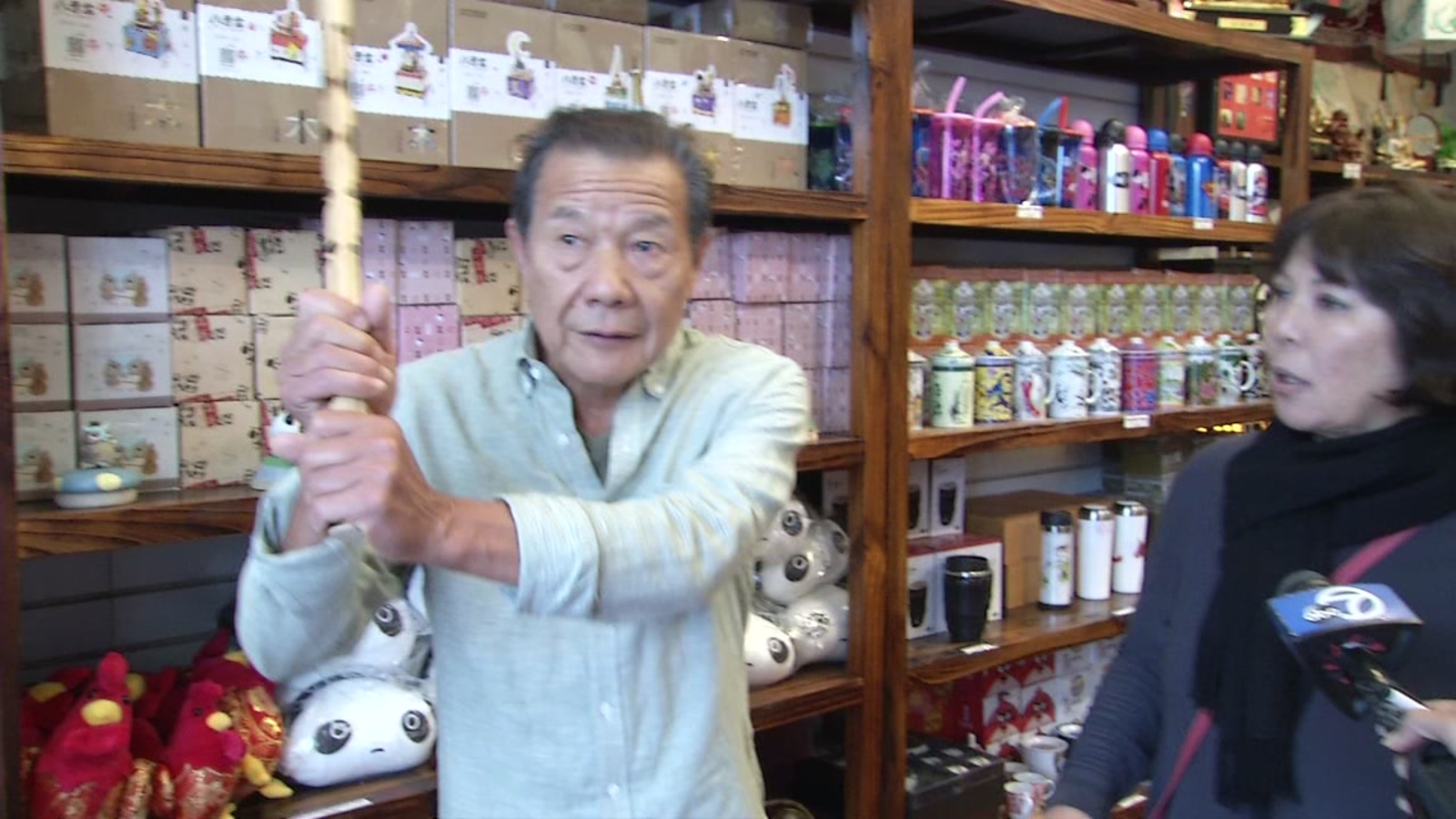 When the 86-year-old confronted Baker, he says he was punched. Through a translator, Liu told ABC7 News he decided to grab a bamboo Kung-Fu stick from a sales display.