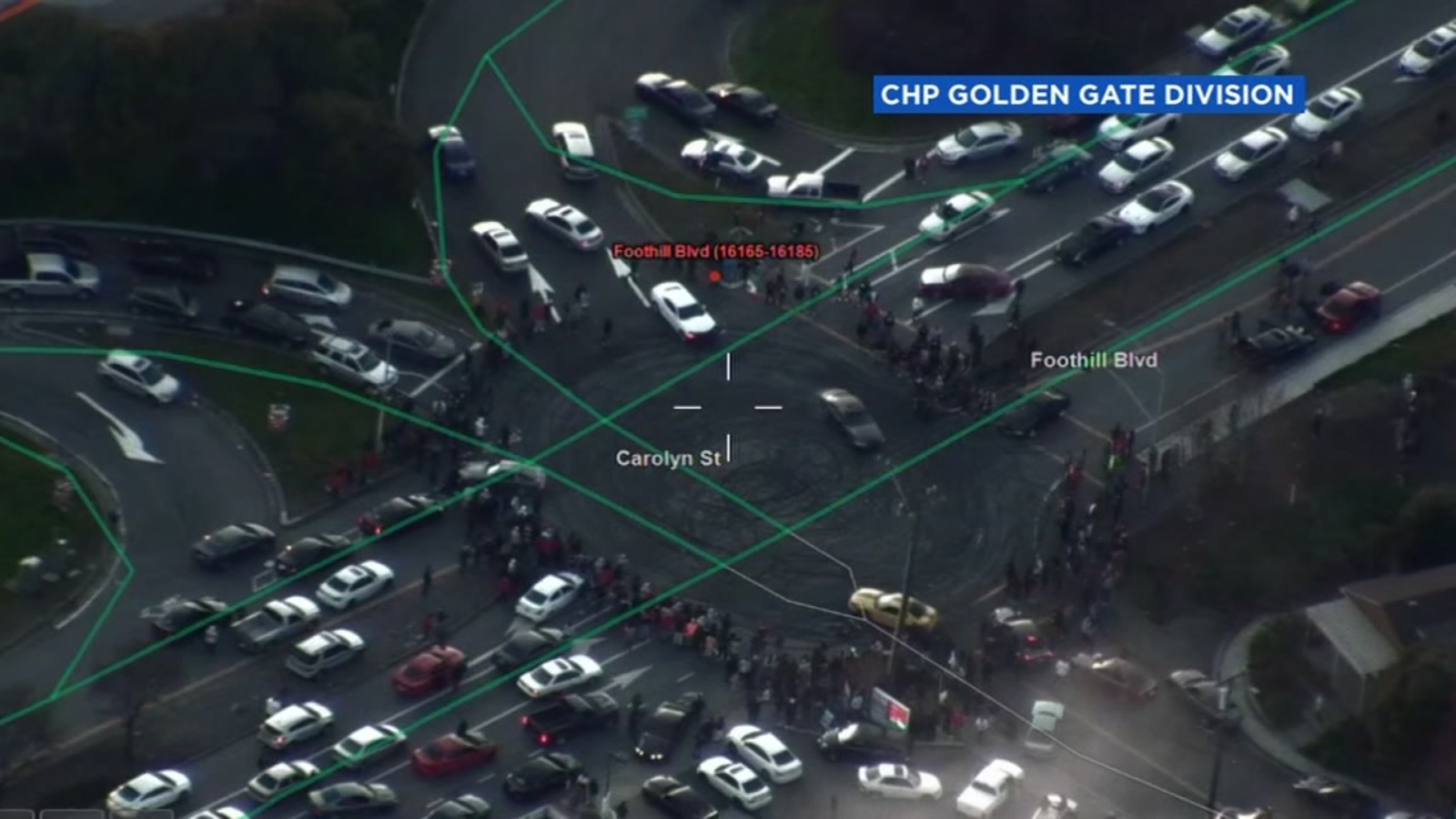 In the video, you can clearly see cars spinning around with smoking tires at the intersection of Foothill Boulevard and Carolyn Street.