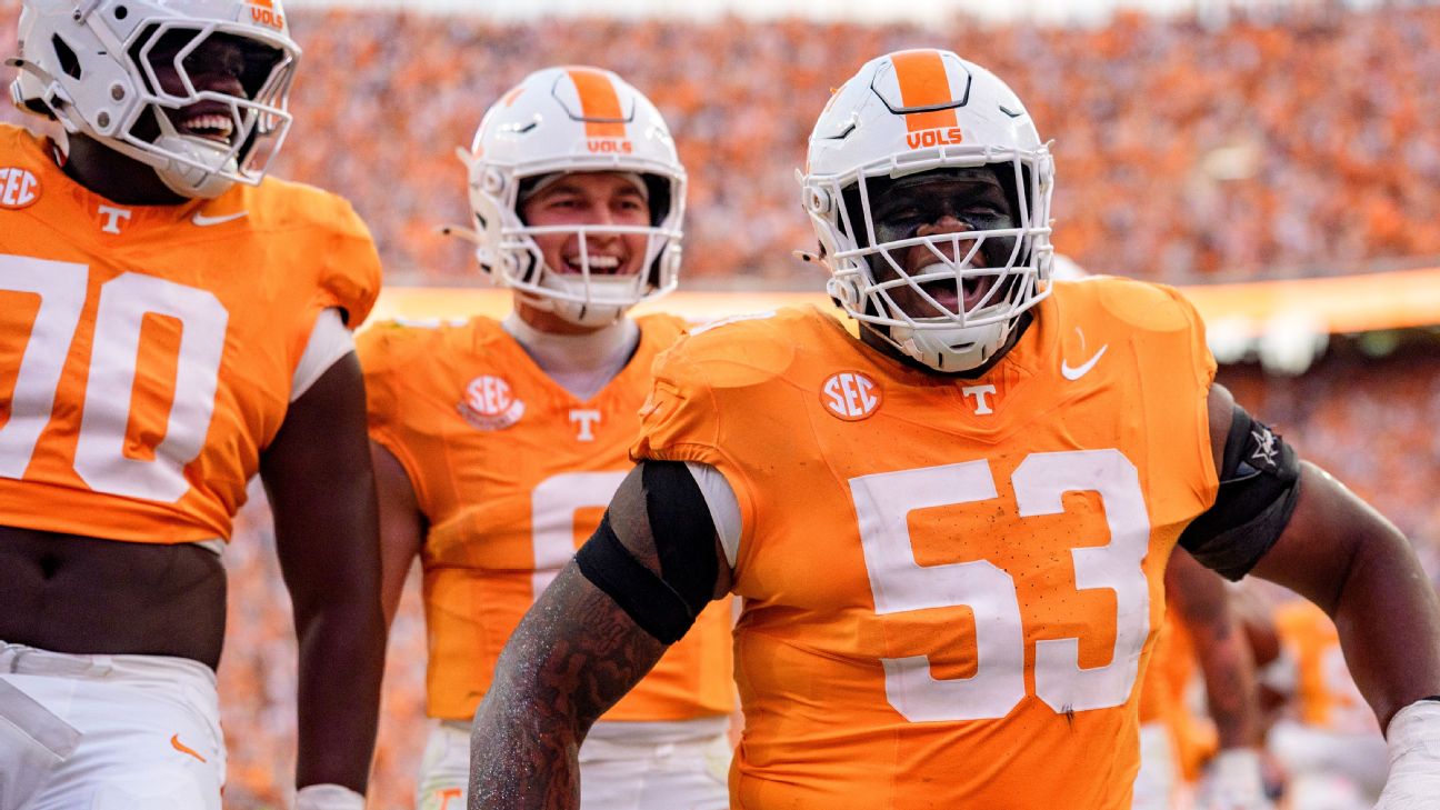 Spotlight: Tennessee. The Vols have looked like a borderline playoff team against unranked opponents in recent weeks, beating Mississippi State and Arkansas by a combined 10 points with one overtime. Offensively they've been elite, averaging 300 yards passing and 200 rushing per game. Defensively, they need to stop the run to make to challenge in the SEC. They'll have a chance against Alabama on Saturday to further legitimize their hopes. With a win, Tennessee's chances of reaching the playoff would jump to 52%, according to the Allstate Playoff Predictor. Tennessee ranks No. 10 in ESPN's game control metric and No. 19 in strength of record. The Vols are projected in the committee's No. 12 spot this week, which means they would get knocked out of the actual field during the seeding process to make room for the highest-ranked Group of 5 champion. The five highest-ranked conference champions are guaranteed spots in the playoff, so if the fifth team is ranked outside of the committee's top 12, its No. 12 team gets the boot.