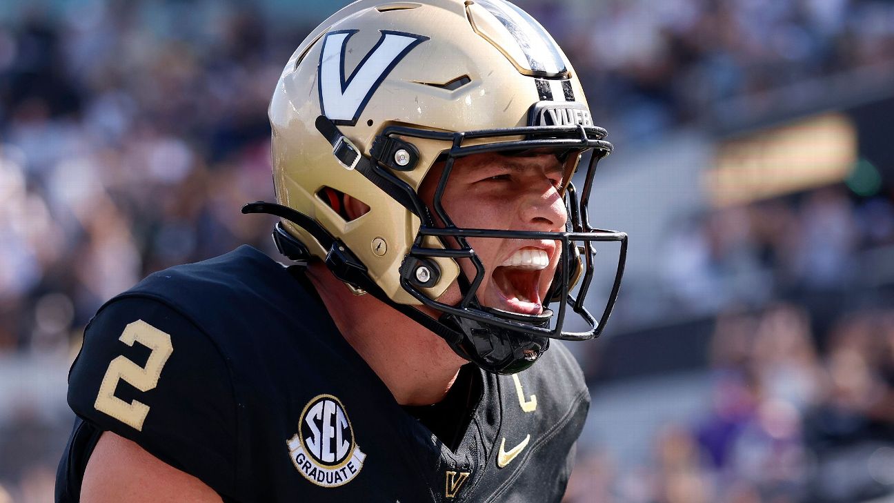 Spotlight: Vanderbilt. The Commodores probably have more work to do in the selection committee meeting room than with the AP poll voters. As good as the win against LSU was, it was Vandy's first win against a Power 4 opponent with a winning record. Both Virginia Tech and South Carolina are sub-.500 teams right now, and wins against FCS Charleston Southern, a 1-6 Sun Belt team in Georgia State and a three-loss Utah State team aren't enough to make the CFP. Vandy has enough opportunities, though, to change that, starting Saturday. If Vandy beats Mizzou, its chances of reaching the CFP will climb to 49%. A loss, though, would drop that to 14%. Vanderbilt's toughest remaining games are against Missouri, at Texas and at Tennessee in the regular-season finale. If the Commodores lose one more game and finish 10-2, they've still got a chance, but how that résumé stacks up with other 10-2 teams leaves the door open for debate.