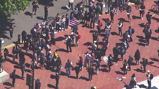 Demonstrations got underway early Thursday in Berkeley over Ann Coulter. Here's a look at video from Sky7 as protesters started to gather and police began preparations early Thursday afternoon.
