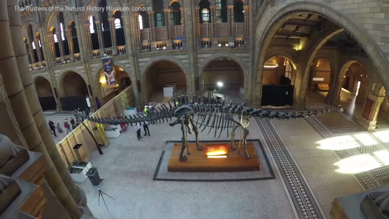A crew of six people spent three weeks dismantling a 70-foot dinosaur replica in Natural History Museum in London.
