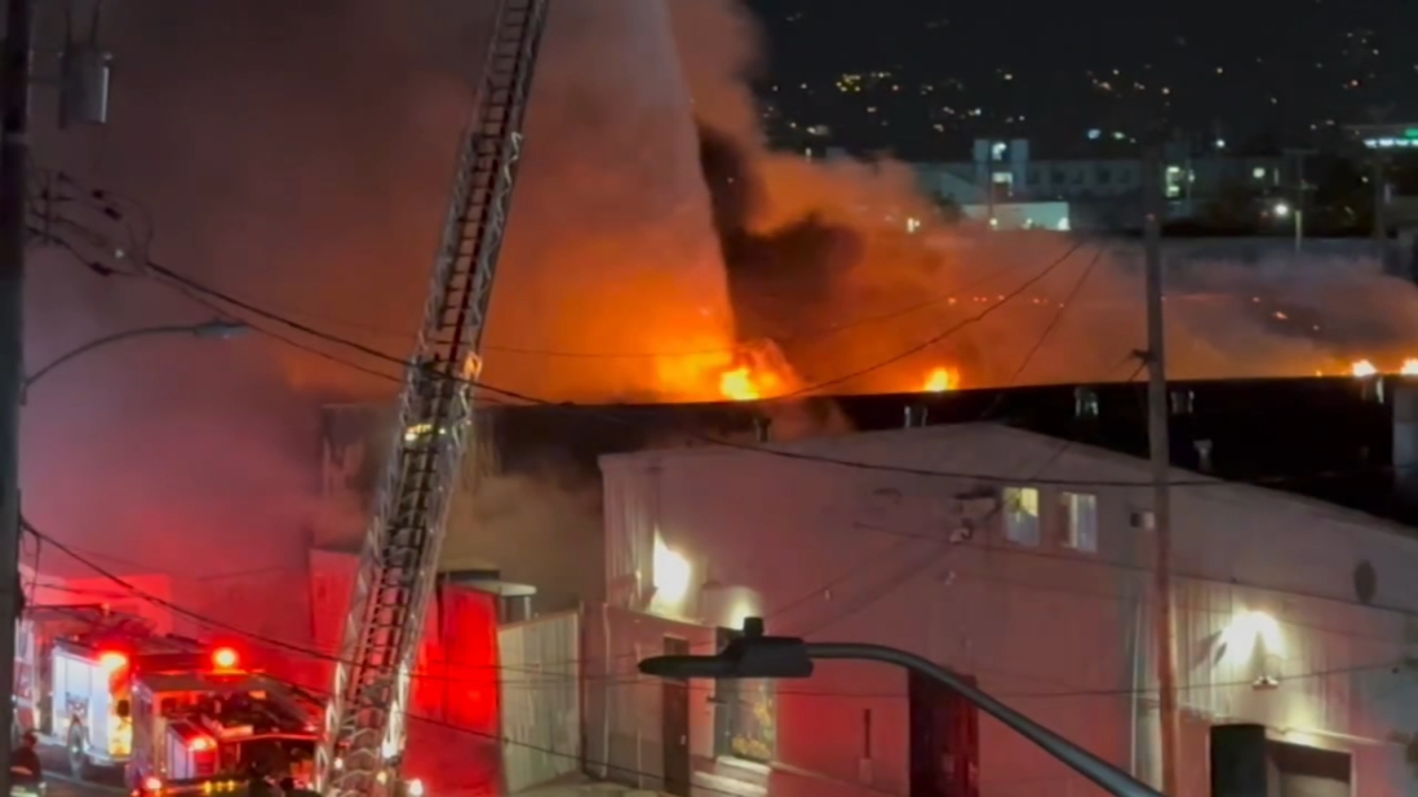 The Oakland Fire Department said crews were alerted to a structure fire in the 1700 block of 24th Street around 10:15 p.m. Wednesday. Upon arrival, they found a burning warehouse of a roofing supply company.