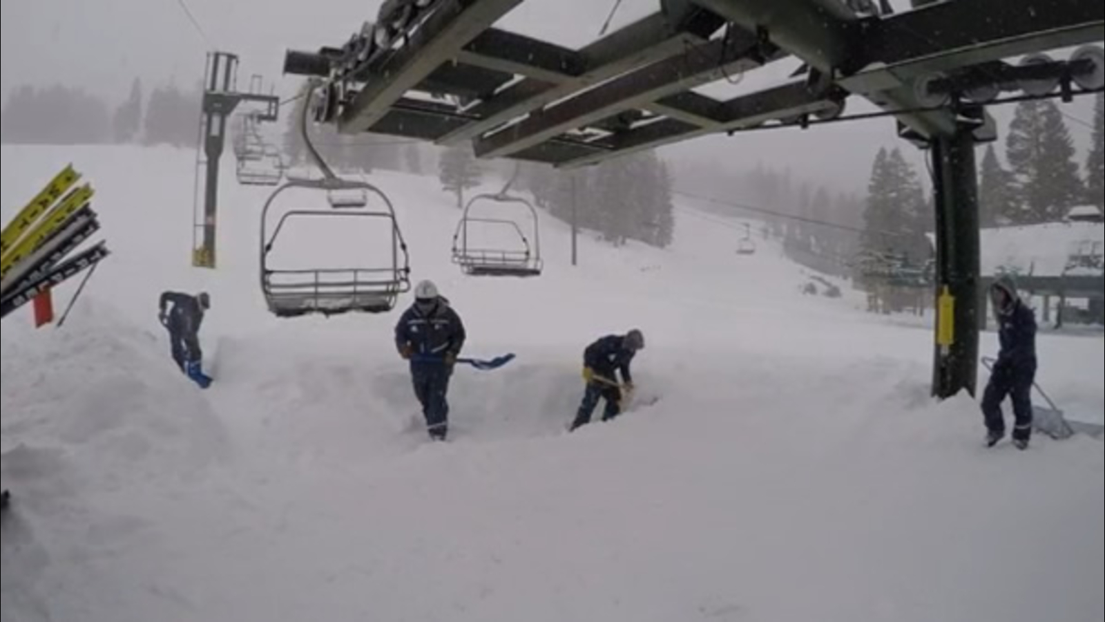 Crews at various ski resorts in the Lake Tahoe area have been digging out lifts that got buried in snow.