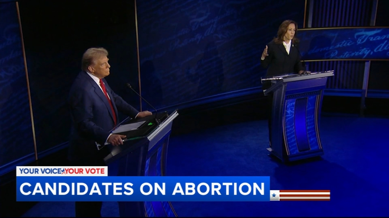 PHILADELPHIA -- Vice President Kamala Harris and former President Donald Trump presented different visions for the future of abortion rights during their presidential debate Tuesday. A back-and-forth between the candidates ended with Harris saying the government shouldn't be deciding what women do with their bodies, but that is what Trump wants -- a claim he denied.