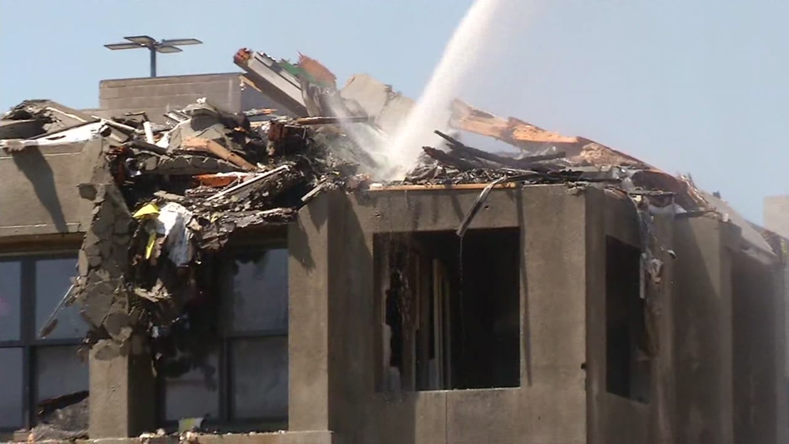 Fire crews demolished enough to let arson investigators from the Bureau of Alcohol, Tobacco and Firearms enter the site and begin searching for clues. The demolition also gives the fire department access to stubborn hotspots still burning beneath the debris.