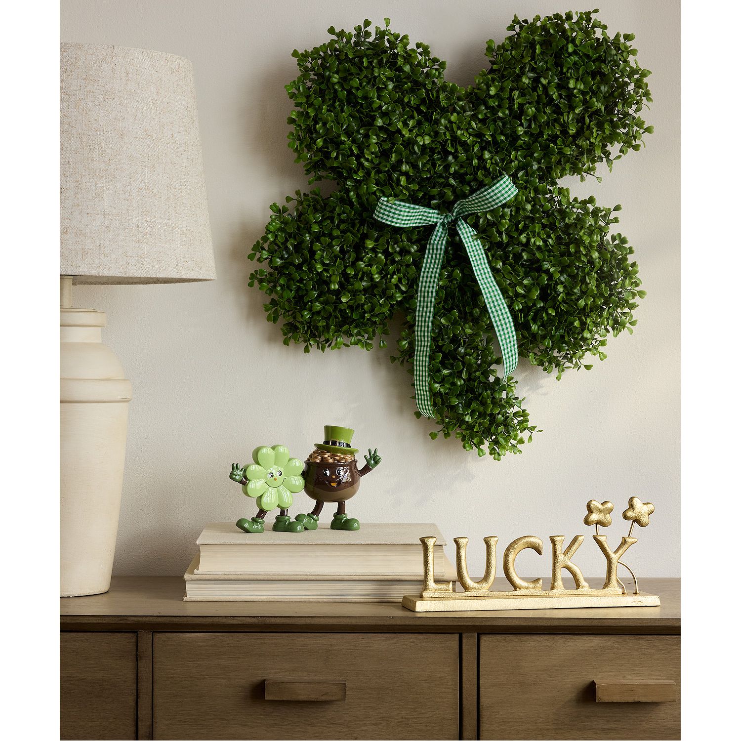Add some fun to your St. Patrick's Day decorations with this cheerful wreath. Whether on your front door or above the mantel, this wreath will bring a fun, festive pop of color to your March decor. It comes with a jute rope for easy hanging and is a great way to welcome friends and family with a bit of luck and greenery.