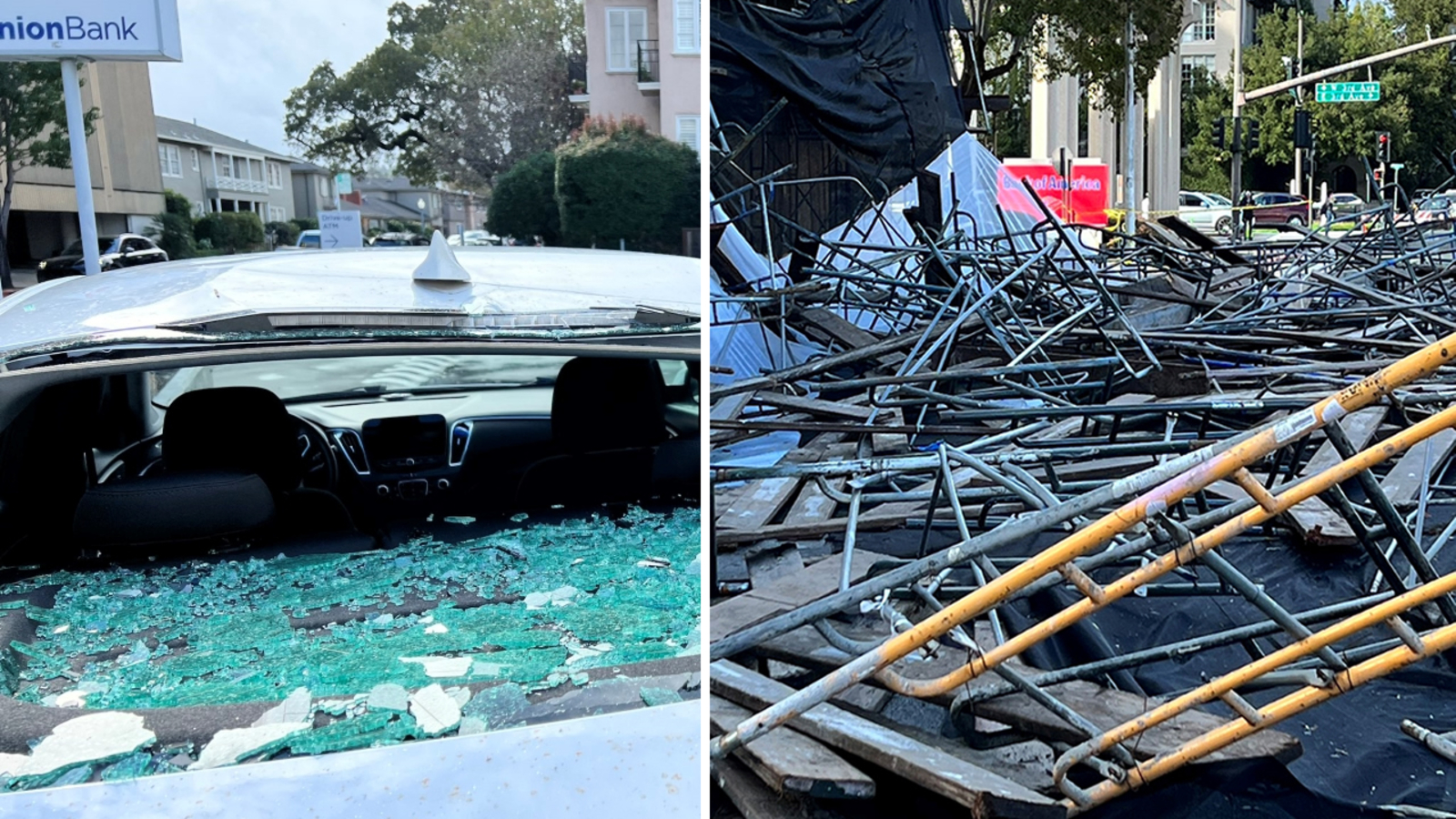 SAN MATEO, Calif. (KGO) -- Some scary moments for drivers on the Peninsula Monday, when scaffolding fell down into the street, hitting several cars. One of the drivers who narrowly missed being seriously hurt says he bought his car just days earlier.