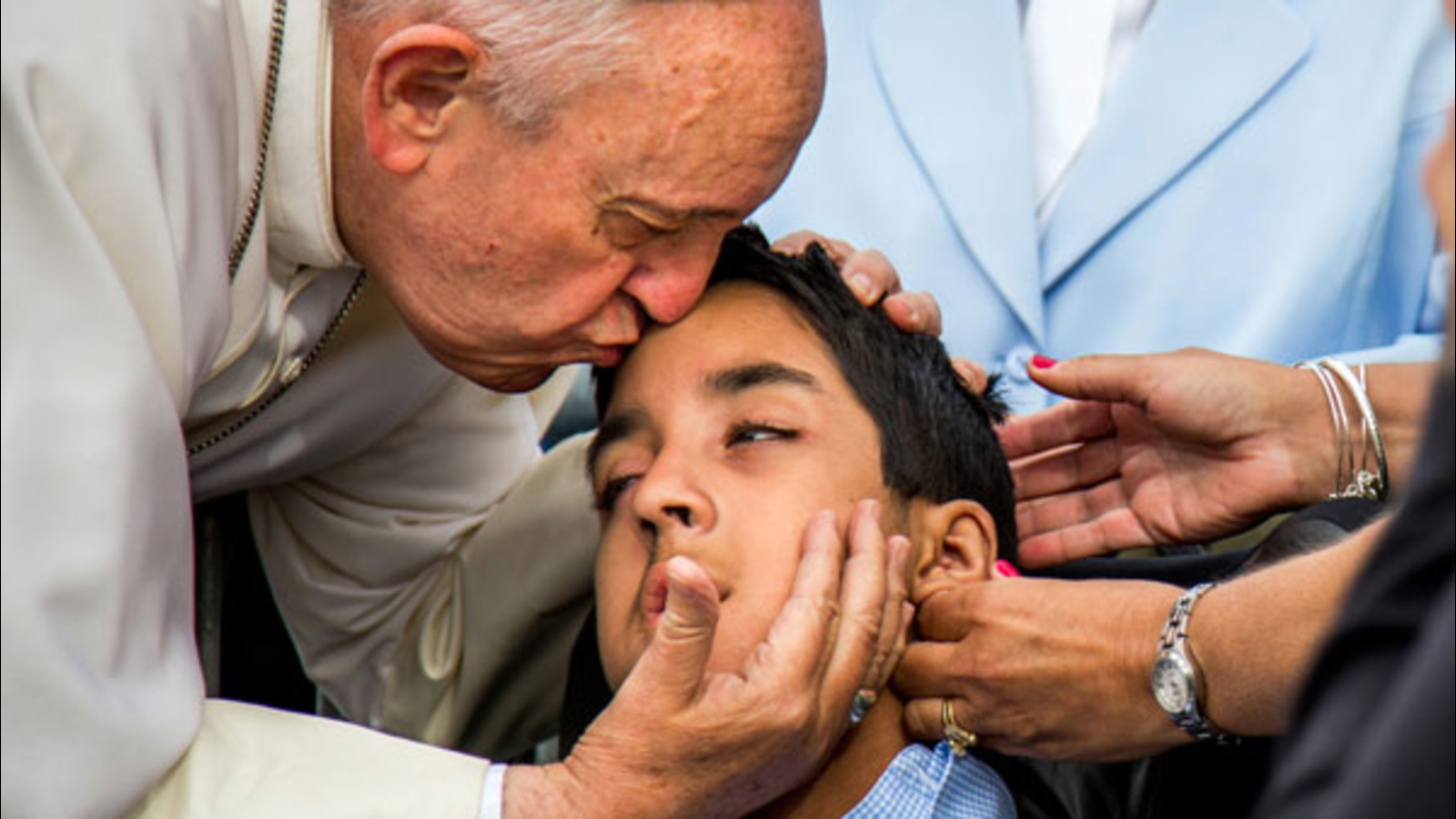 As millions watched on TV, they saw Pope Francis kiss and bless his son who has cerebral palsy.