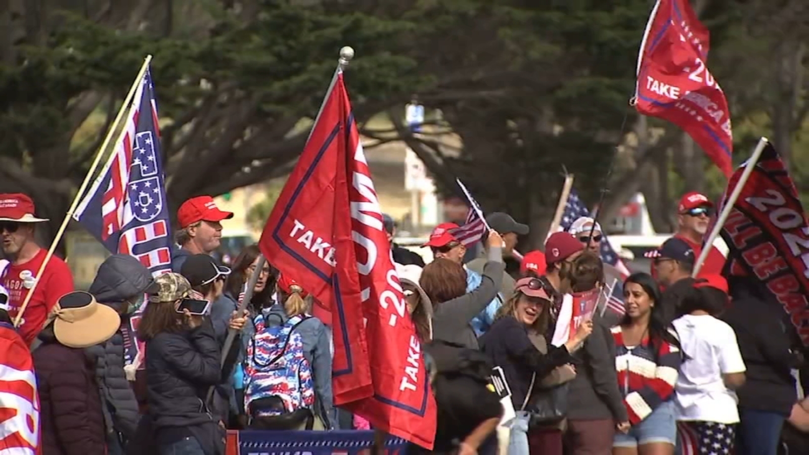 Trump supporters gathered at San Francisco's Marina Green, waving Make America Great Again flags and shouting "We love Trump."