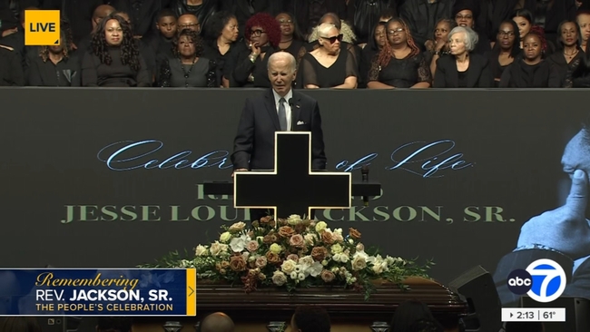 During his remarks on Friday, Biden called for Jackson's memory to inspire Americans. "Let us be what Jesse called us to be, a margin of hope. Sometimes it's the margin [that can] change people's lives, to change community lives; lift up this country and light the path to being the nation Jesse always believed we can be," he said.