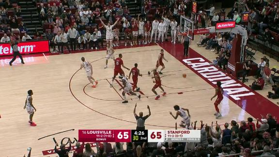 Louisville's Khani Rooths made a 3-pointer with 4:49 left to tie the game at 65-all, but Agarwal responded with a 3 for Stanford and the Cardinal held on from there. Gealer's free throws made it a two-possession game after Louisville had moved within two.