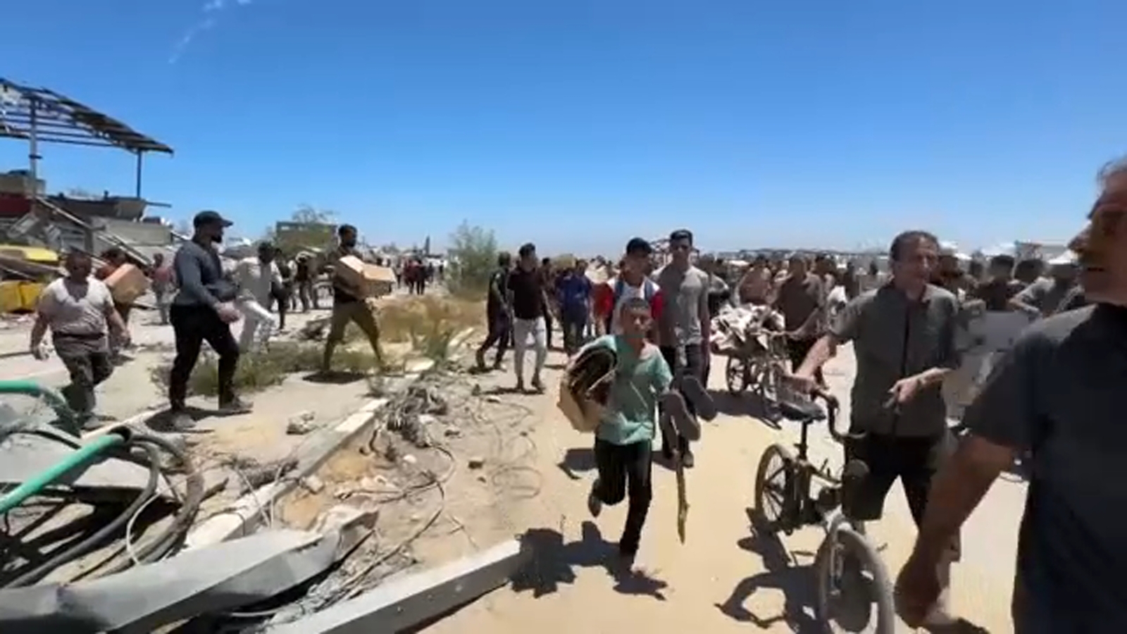 Videos from the site showed large crowds of Gazans rushing to collect aid, carrying boxes stamped with the mark of the Gaza Humanitarian Foundation, or GHF -- which is directing the aid distribution in collaboration with the American and Israeli governments.