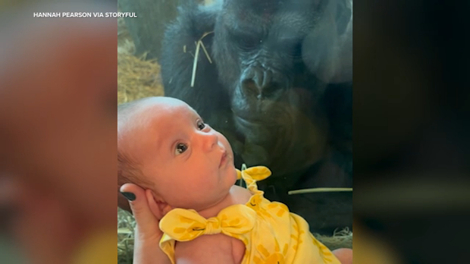 The video shows Pearson holding her two-month-old baby, Noah, up to the glass to see the gorilla. The animal carefully observed the baby and eventually made what appeared to be a kissing gesture toward him.