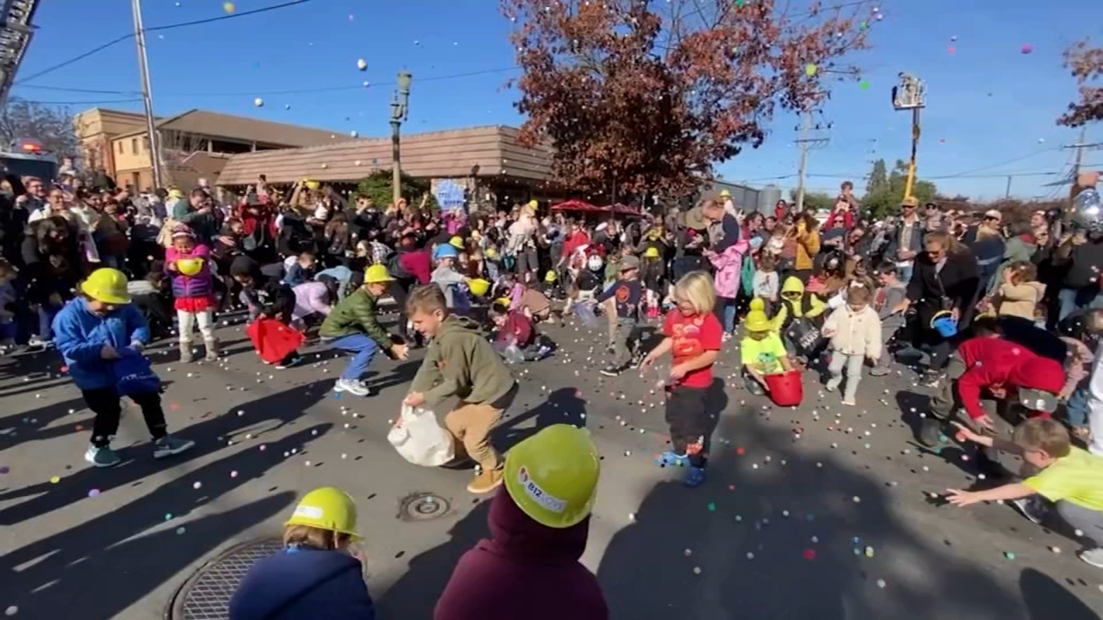 It was a spectacle watching 25,000 small rubber balls dropped from a ladder truck 40 feet up. Hundreds of kids were scrambling to collect them.