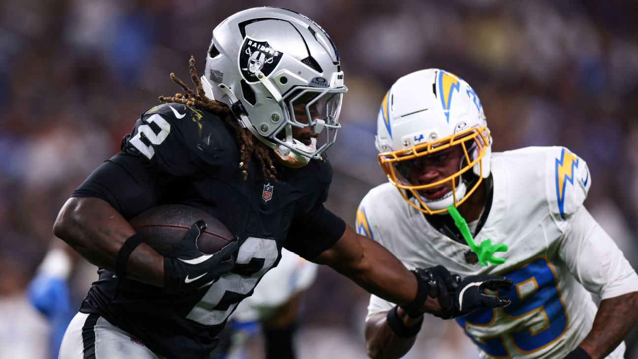 Jeanty's usage has been in question. On Las Vegas' second play against the Los Angeles Chargers, the No. 6 overall pick broke loose for a 13-yard carry. He cut left and pushed down Chargers safety Alohi Gilman before getting tackled at the Raiders' 35-yard line.