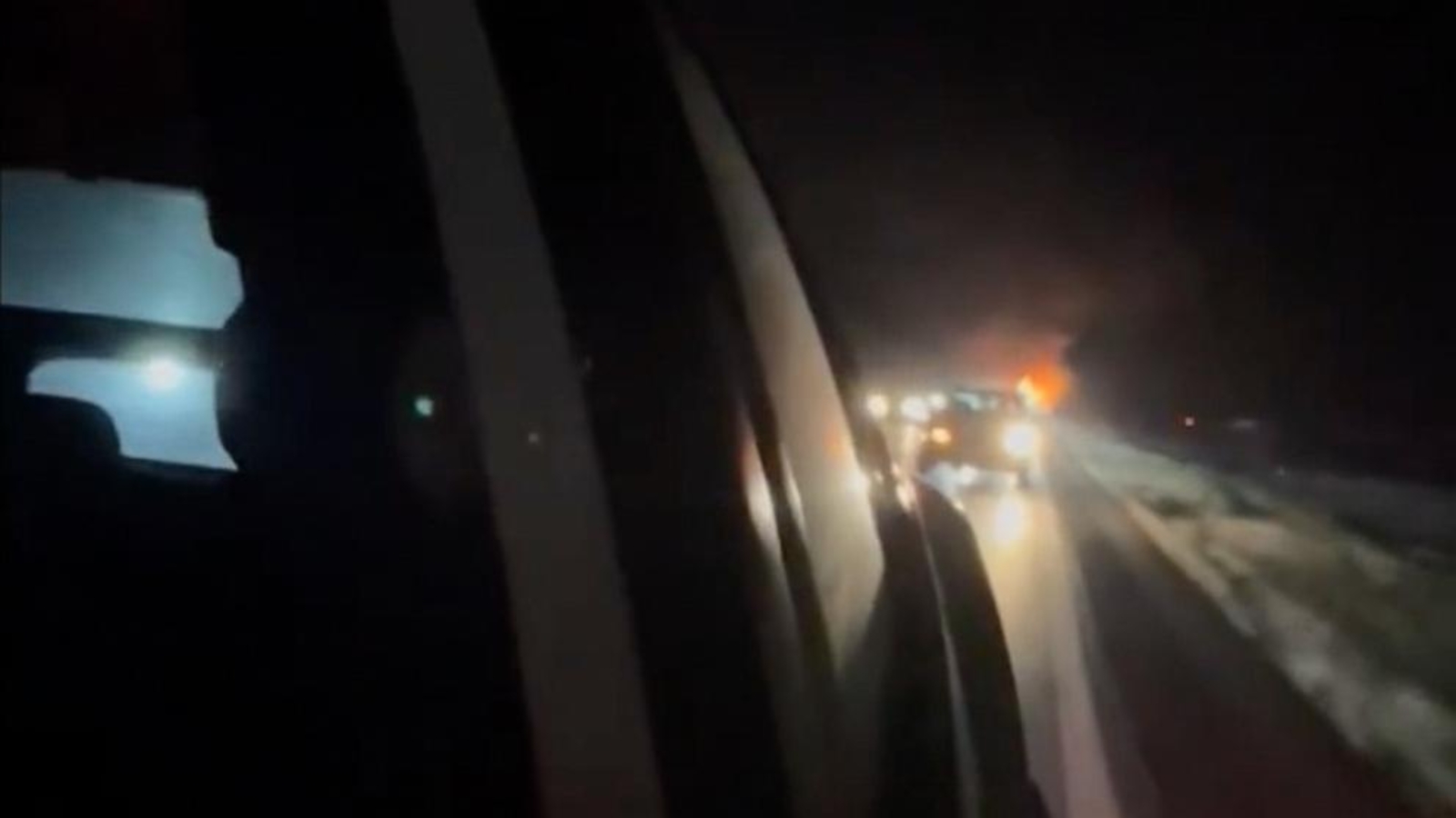 The truck and more than a dozen other vehicles caught fire after the crash, police said.